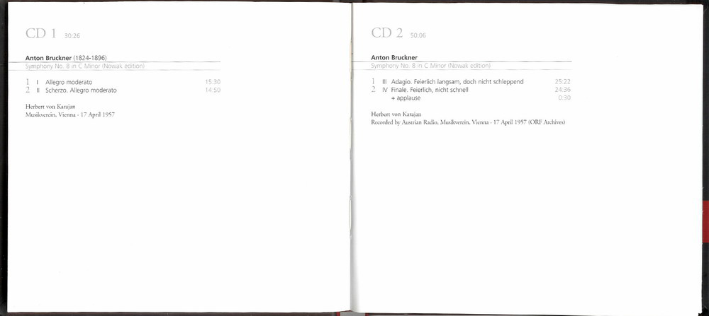 ブルックナーの交響曲第8番ハ短調はCD1(第1,第2楽章)、CD2(第3,第4楽章)に収録されています。