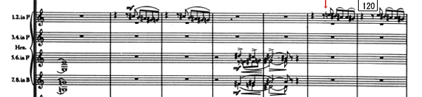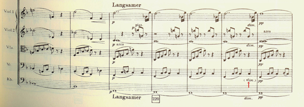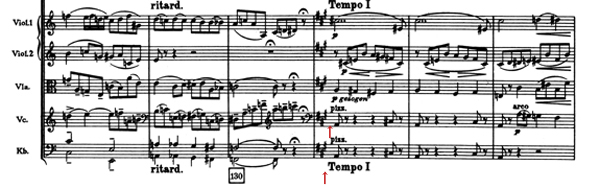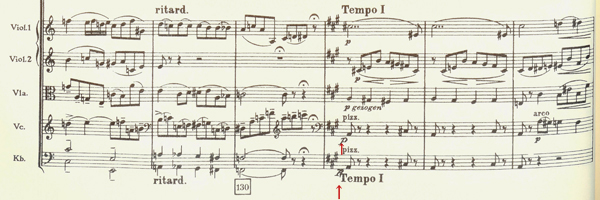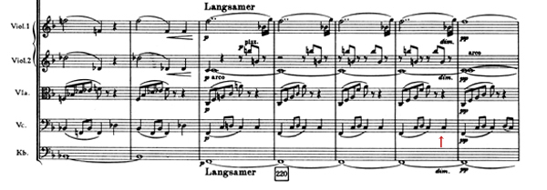 第1楽章(譜例に赤の矢印をつけているところが両者で異なっています。