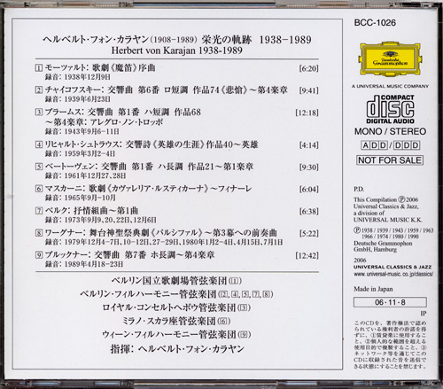 「カラヤン 栄光の軌跡 1938-1989」のディスク裏