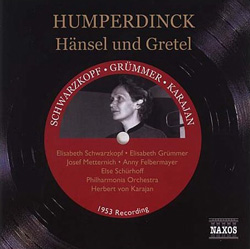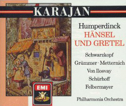 1928/1929から1952/1953シーズンに演奏会で取り上げていない *1952/1953シーズンにスタジオ録音を残しているRec:1953.6.27.,29.-30.,7.1.-2.,16. キングズウェイ・ホール、ロンドン フィルハーモニア管弦楽団 ロートン女子高校合唱団 バンクロフト学校合唱団 ヨゼフ・メッテルニヒ(Br:父親ペーター) マリア・フォン・イロシュヴァイ(A:母親ゲルトルート) エリーザベト・グリュンマー(S:ヘンゼル) エリーザベト・シュヴァルツコップ(S:グレーテル) エルザ・シュアホフ(A:魔女) アニー・フェルベルマイヤー(S:眠り精、暁の精) ヘルベルト・フォン・カラヤン指揮 CD:EMI,7692932(1988.4.6.リリース)