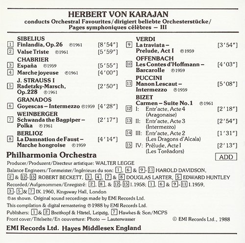 CDM769467 2 KARAJAN conducts Orchestral Favourites III