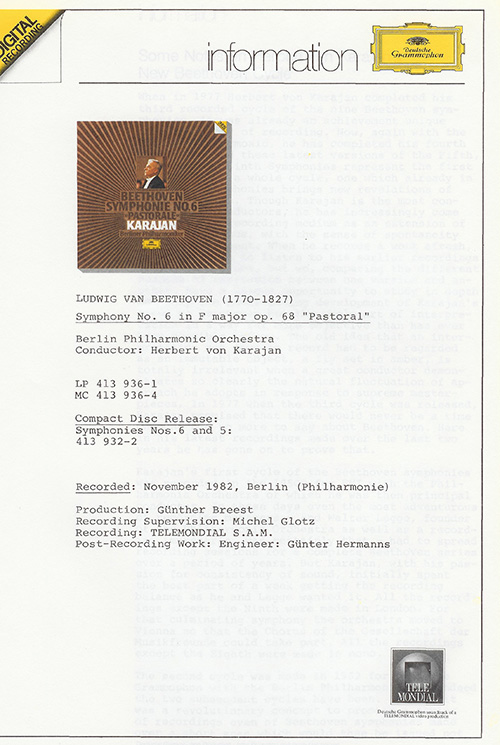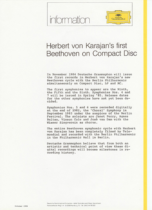 1984年11月にドイツ・グラモフォンがカラヤン/BPOの新ベートーヴェン全集の最初の録音をCD、LP、MCで同時にリリースするという内容。