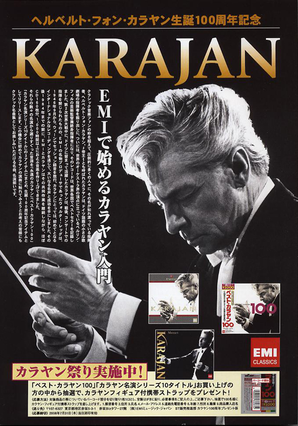 2008年に生誕100年を迎えるヘルベルト・フォン・カラヤンのEMIのパンフレットです。