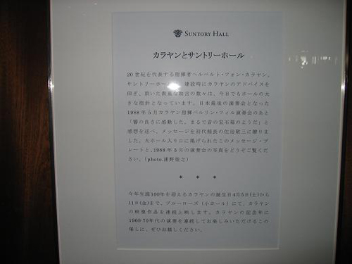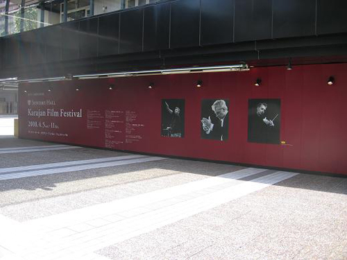 また、4月5日〜11日にサントリーホールの小ホール(ブルーローズ)で開催される「カラヤン・フィルム・フェスティバル」の広告パネルが設置されています。