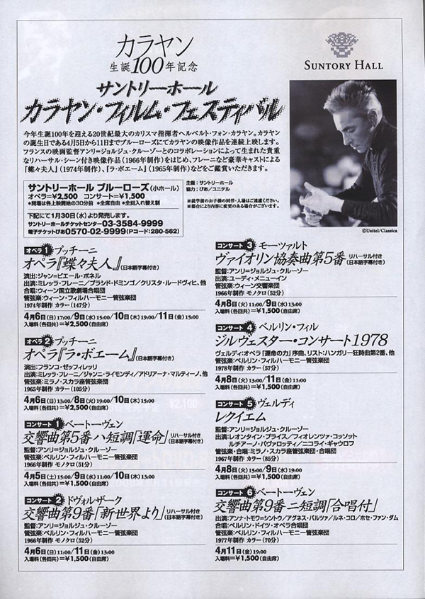 カラヤン生誕100年記念 サントリーホール 「カラヤン・フィルム・フェスティバル」のパンフレットです。