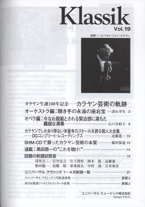 ユニヴァーサル・ミュージック刊のKlassik, 2008.4. Vol.19の目次です。