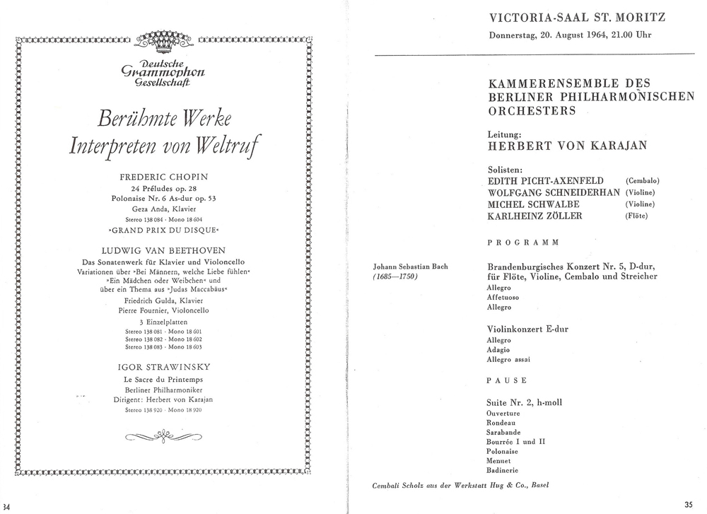 Am schoensten war es in St-Moritz-Bad, wo Karajan Kammermusik gespielt hat.