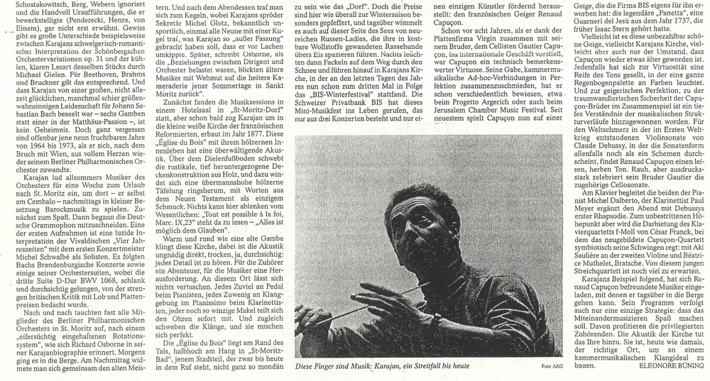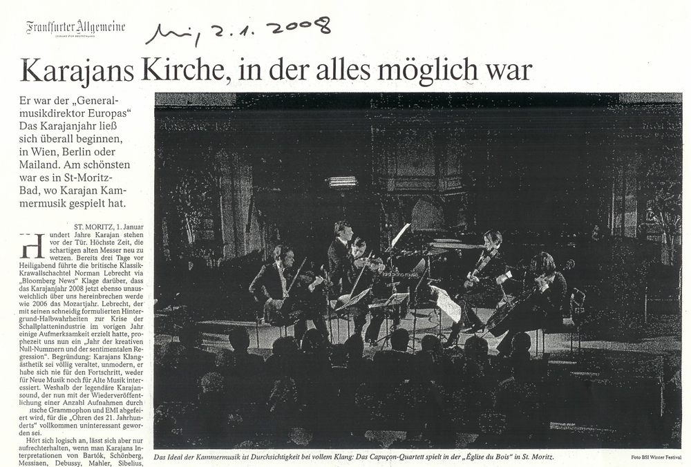 Karajans Kirche, in der alles moeglich war / Frankfurter Allegemeine (2. January 2008.)