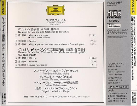 POCG-9367 ブラームス:ヴァイオリン協奏曲、二重協奏曲