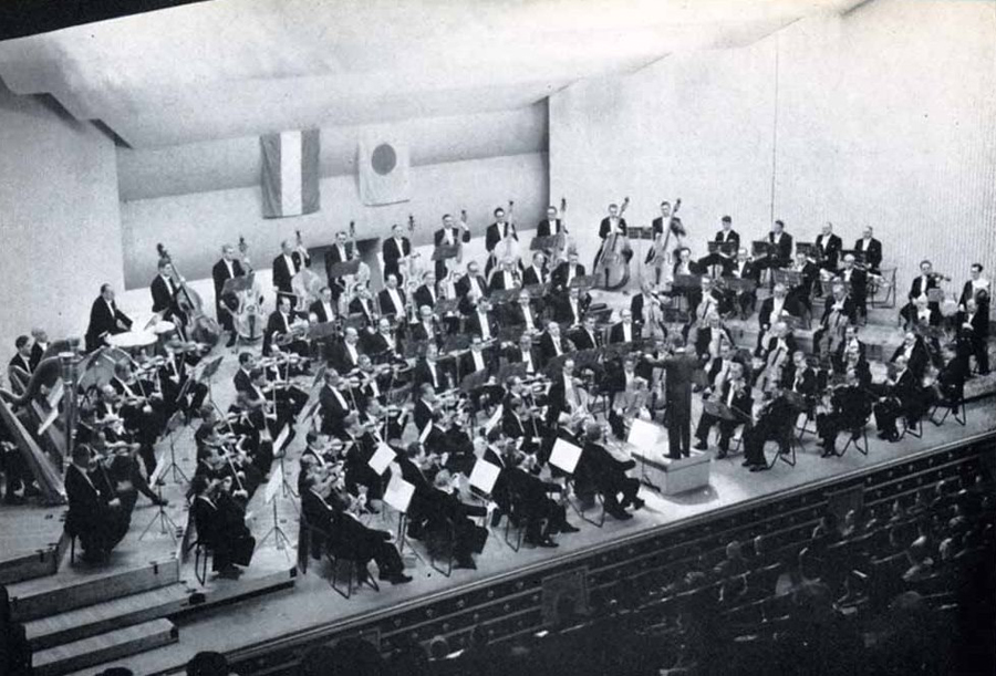 1959年10月28日に日比谷公会堂で行われたブルックナー交響曲第8番(日本初演)と思われる画像です。