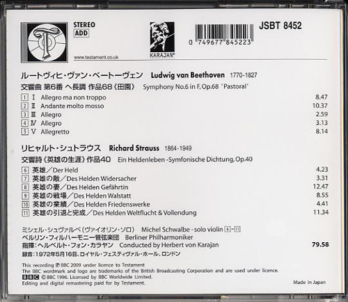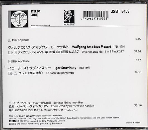 Karajan / Live in London1972 CD:Testament, JSBT 8453