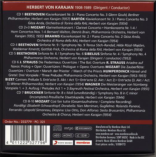 CD:Documents, 232779 (Karajan 10 CD-Set) Boxジャケットの裏です。