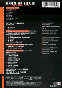 2008年5月21日リリースの「カラヤンの遺産 コンプリートDVD-BOX 」(40DVD, SIBC-69〜110)付属の解説書に佐々木豊氏制作「ヘルベルト・フォン・カラヤン演奏会記録」が掲載されています。 記載ページを「KL解説書p***」とします。