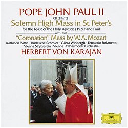 1979/1980から1983/1984シーズンには演奏会で取り上げていない 1984/1985: (8)1985.6.29.Wiener Philharmoniker/Messe in St.Peter Programme)W.A.Mozart:Kroenungsmesse KV 317 Petersdom,Rom Wiener Philharmoniker(Orchester) Singverein der Gesellschaft der Musikfreunde(Chor) Kathleen Battle(S) Trudeliese Schmidt(A) Goesta Winbergh(T) Ferruccio Furlanetto(Bs) Rudolf Scholz(Orgel) Herbert von Karajan(Dirigent) (KC8、pa2,p334、OM巻末p173) (KI3、KL解説書p279) *この演奏会のライヴ録音が残されている