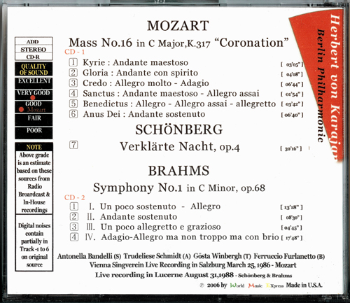 KARAJAN CENTRUMの記録では"Papst Pius VI"(ピウス6世)となっている(2006.5.7.)。