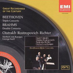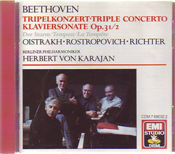 *1969/1970シーズンにピアノ、ヴァイオリンとチェロのための三重協奏曲のスタジオ録音を残しているRec:1969.9.15.-17. イエス・キリスト教会、ダーレム ベルリン・フィルハーモニー管弦楽団 ダヴィッド・オイストラフ(vn) ムスティスラフ・ロストロポーヴィッチ(vc) スヴャトスラフ・リヒテル(p) ヘルベルト・フォン・カラヤン指揮 CD:EMI,CDM7 69032-2(Studio)
