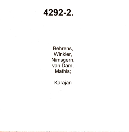これらのシーズンには演奏会で取り上げていない。 *1990年のザルツブルク復活祭音楽祭には「フィデリオ」が予定されていた。 この上演はカラヤンの死去により実現しなかった。