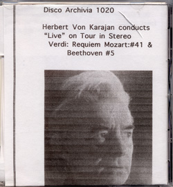 Disco Archivia 1020 1976年11月16日ニューヨーク・ライヴ(ヴェルディ:レクイエム) 1973年9月8日ベルリン・ライヴ(モーツァルト:交響曲第41番「ジュピター」) 1973年11月2日大阪ライヴ(ベートーヴェン:交響曲第5番「運命」)