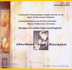 Lanta Fe Music, LF-405 1955年2月27日ワシントン・ライヴ(R.シュトラウス:交響詩「ティル・オイレンシュピーゲルの愉快ないたずら」)、1989年2月28日ニューヨーク・ライヴ(シューベルト:交響曲第8番「未完成」)、カラヤン・インタビュー