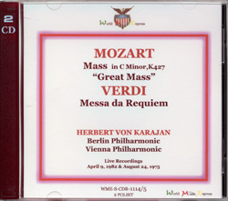 World Music Express, WME-S-CDR1114/5 1982年4月9日ザルツブルク復活祭音楽祭ライヴ(モーツァルト:ミサ曲ハ短調)、1975年8月24日ザルツブルク音楽祭(ヴェルディ:レクイエム)