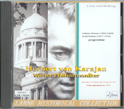 1989年2月28日ニューヨーク・ライヴ(ヨハン・シュトラウス、ヨゼフ・シュトラウス) を収録したディスクRec:1989.2.28.ニューヨーク・ライヴ カーネギー・ホール、ニューヨーク ウィーン・フィルハーモニー管弦楽団 ヘルベルト・フォン・カラヤン指揮 CD-R: Lanne Historical Collection, LHC-7059 (2008.5.リリース) ジャケット表示のタイミング track1: 08.27 ヨハン・シュトラウス 「ジプシー男爵」序曲 track2: 10.09 ヨゼフ・シュトラウス ワルツ「天体の音楽」 track3: 04.32 ヨハン・シュトラウス アンネン・ポルカ track4: 10.24 ヨゼフ・シュトラウス ワルツ「うわごと」 track5: 03.13 ヨハン・シュトラウス 常動曲 track6: 17.16 ヨハン・シュトラウス 皇帝円舞曲 track7: 03.27 ヨハン・シュトラウス ラデツキー行進曲
