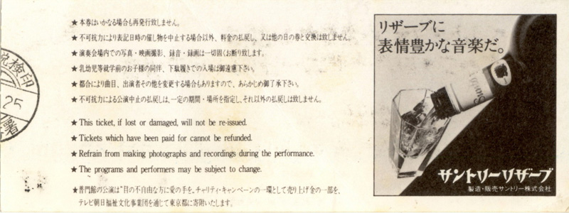 1988ǯ4·î30Æü¥«¥é¥ä¥ó/¥Ù¥ë¥ê¥ó¡¦¥Õ¥£¥ë¤ÎÂçºå¸ø±é¤Î¥Á¥±¥Ã¥È