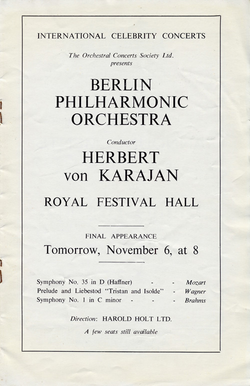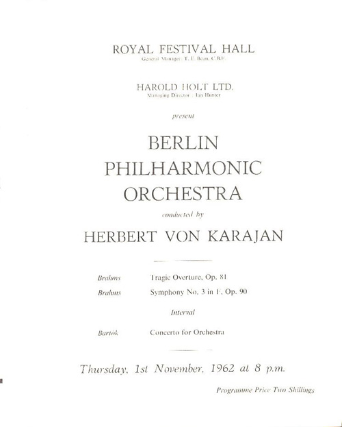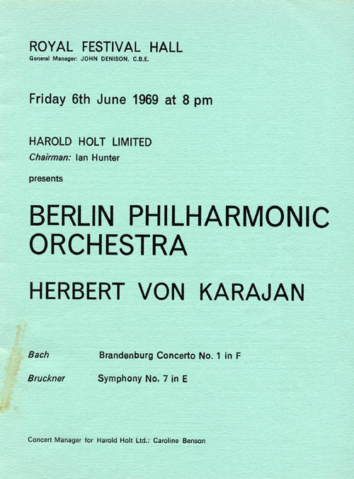 1969年6月4日のロンドンのロイヤル・フェスティヴァル・ホールにおけるベルリン・フィル演奏会