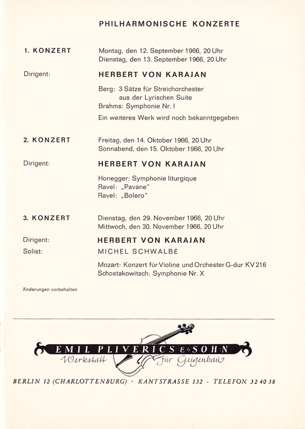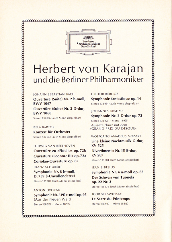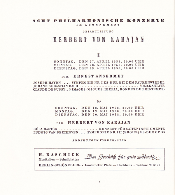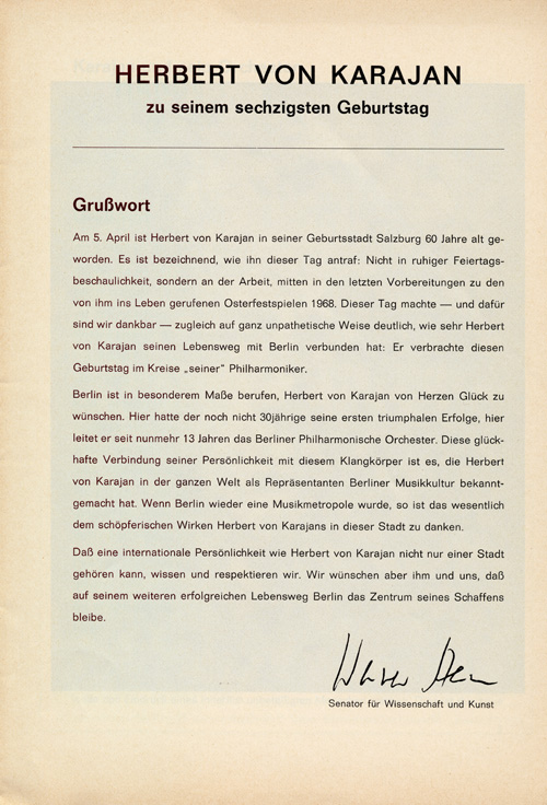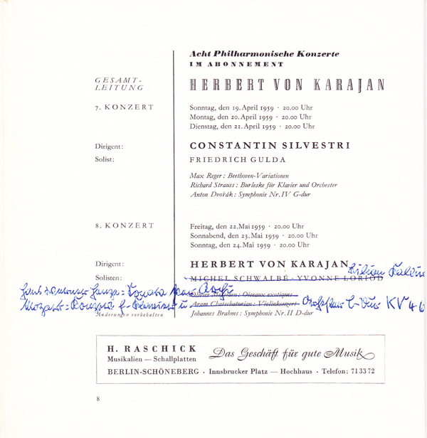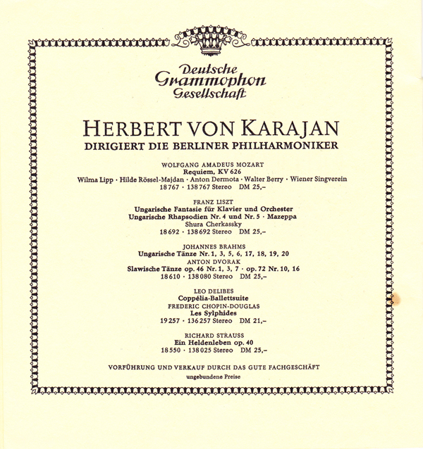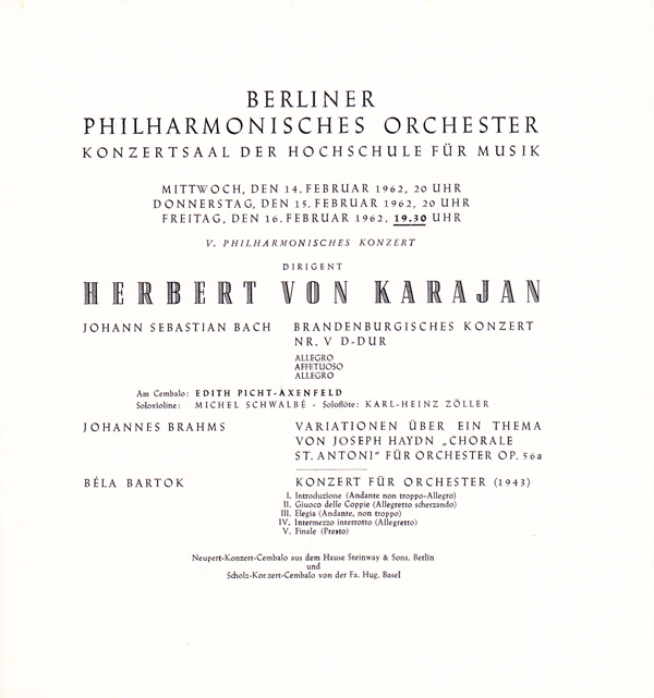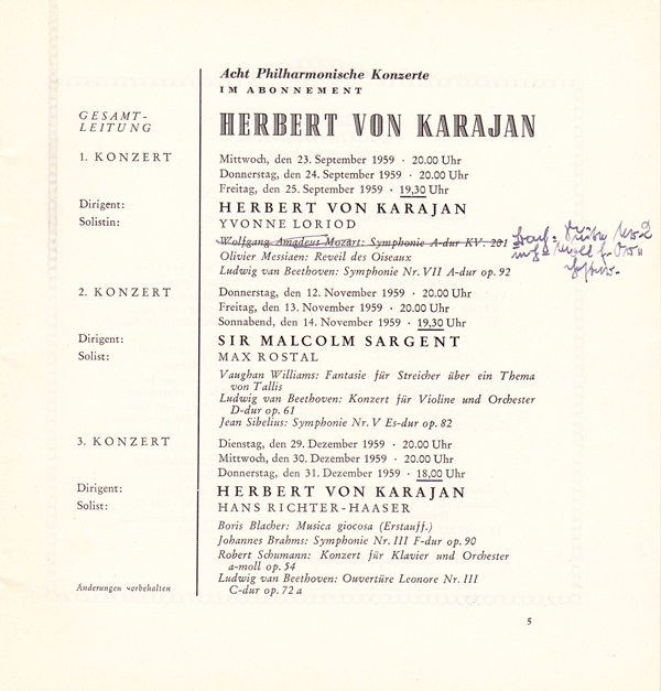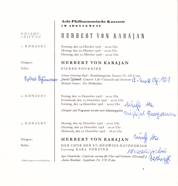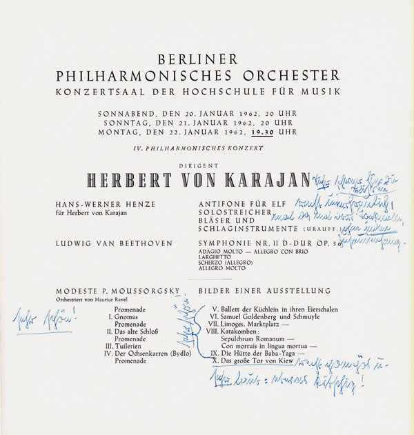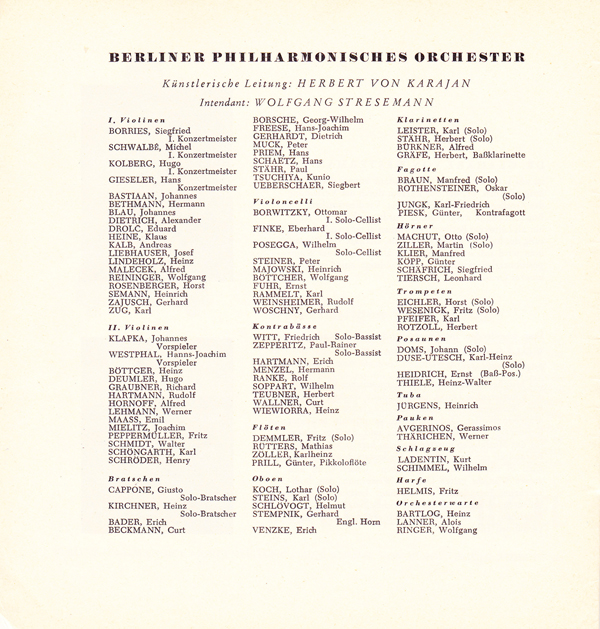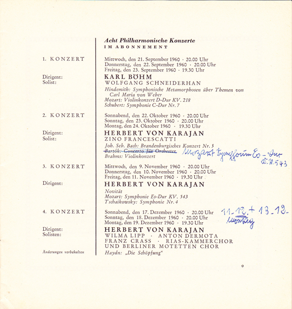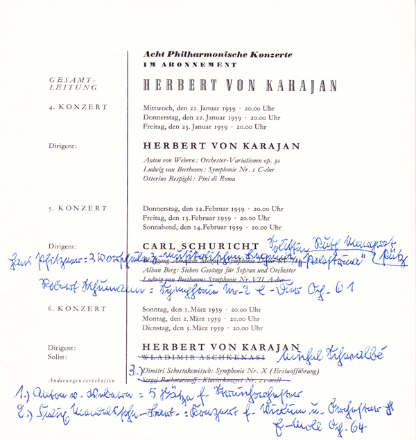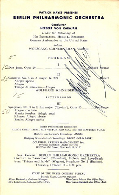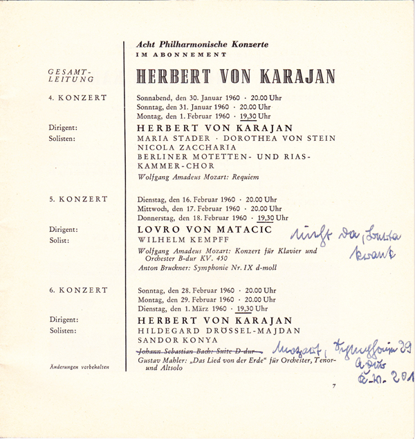 最下段にはJuli/Augusut: Salzburg. Dirigent: Herbert von Karajan, Herbert von Karajan (Neue Musik)とあります。