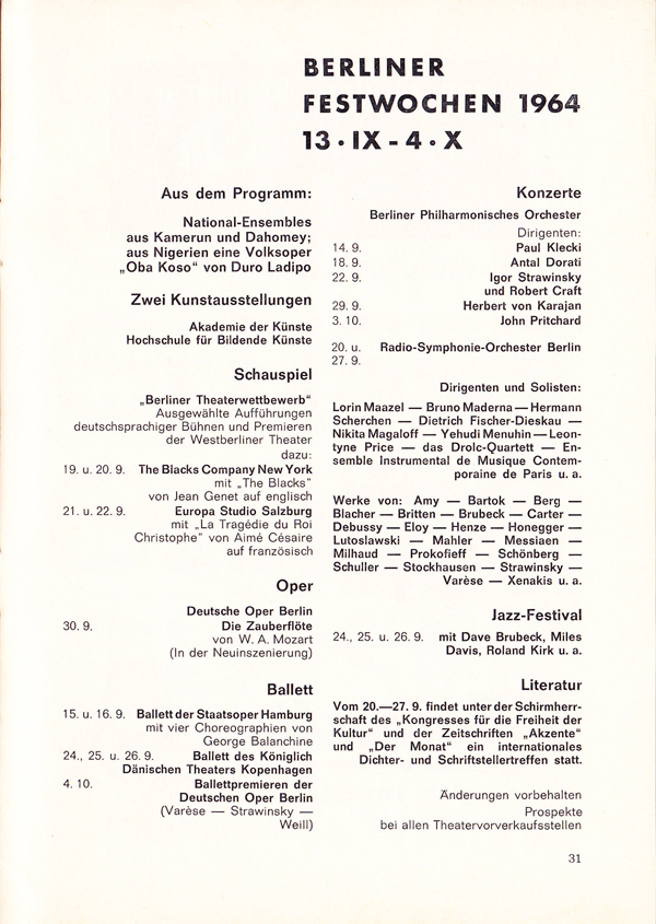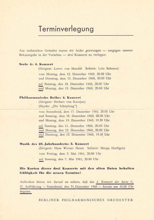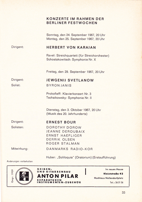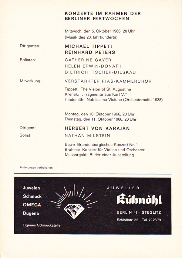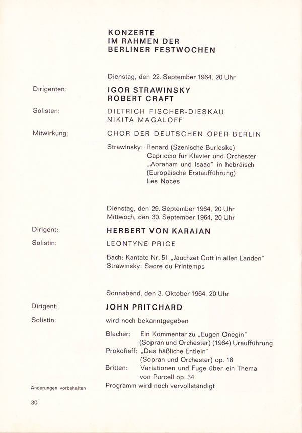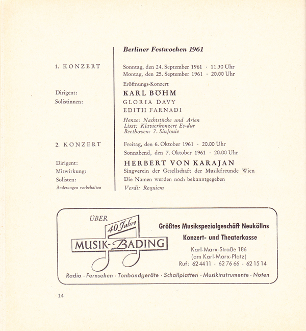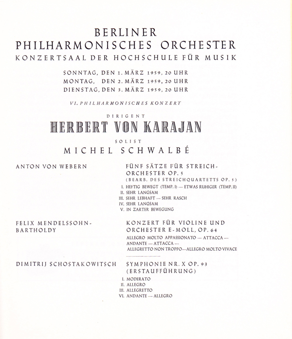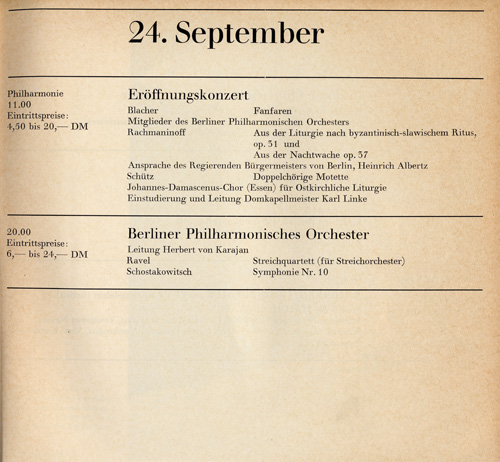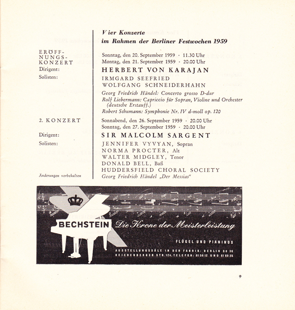 1959年9月20日(午前11時30分)、21日(午後8時)にベルリン芸術週間開幕コンサートが予定されました。