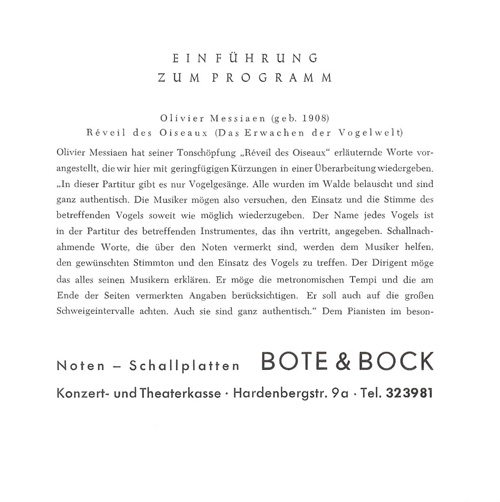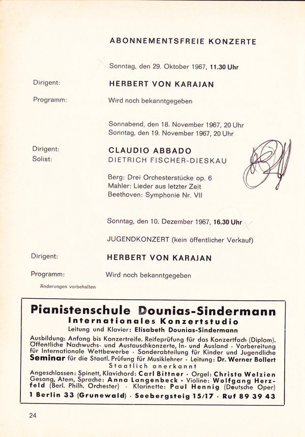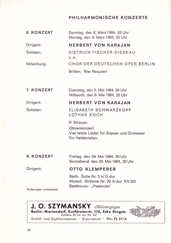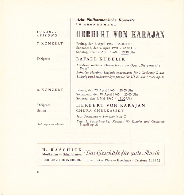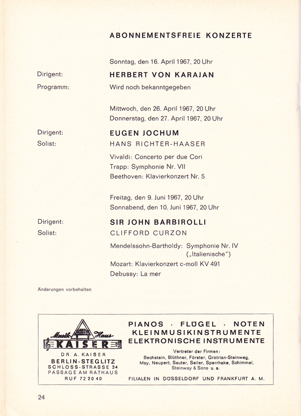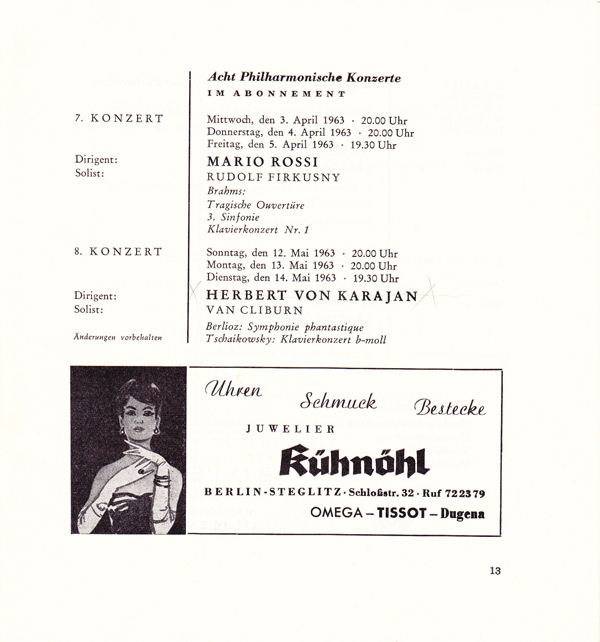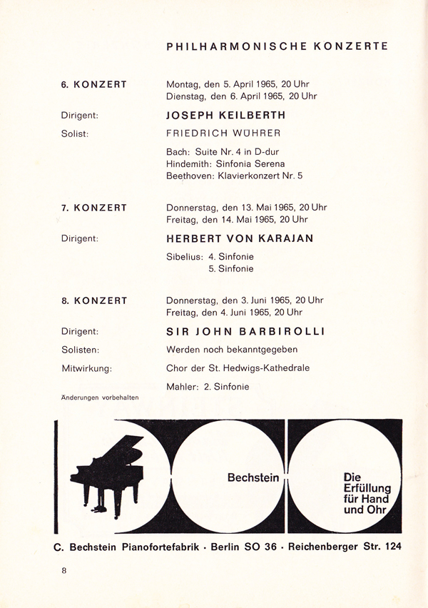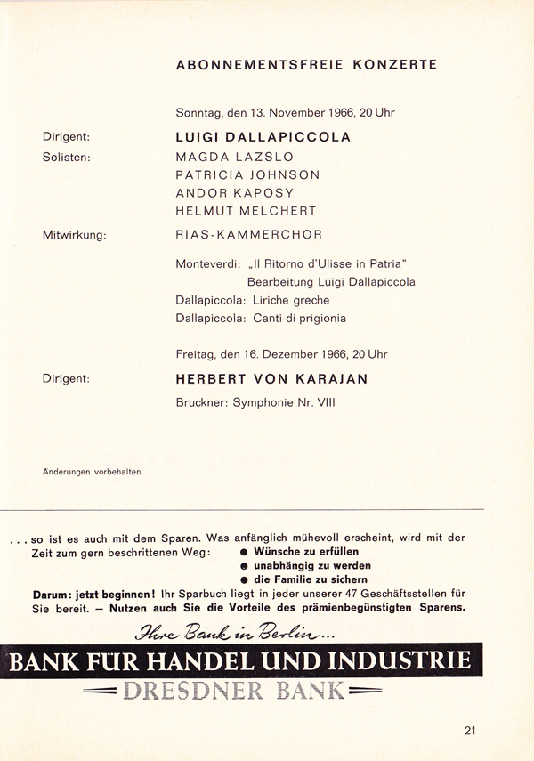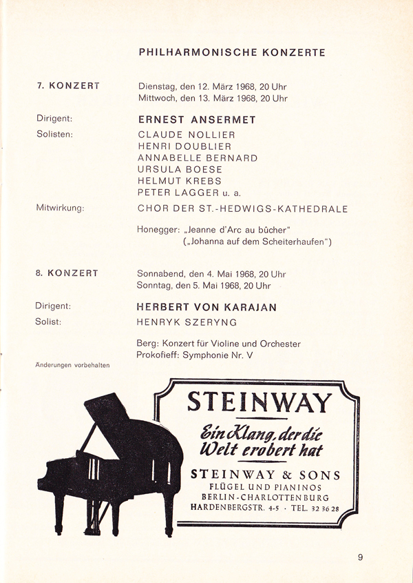 1959年9月20日(午前11時30分)、21日(午後8時)にベルリン芸術週間開幕コンサートが予定されました。
