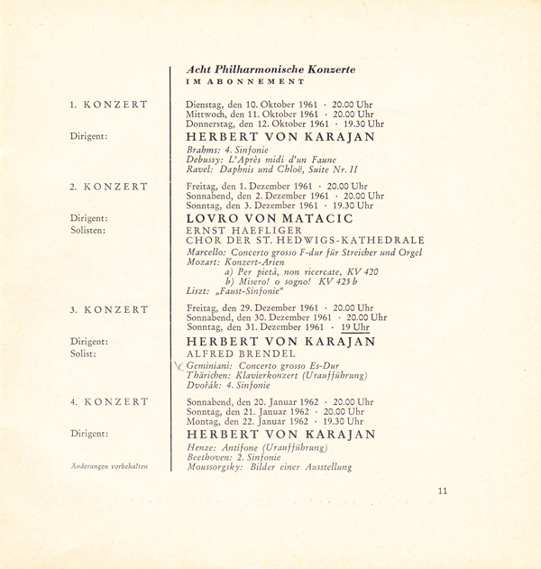 1961年10月6日(午後8時)、7日(午後8時)にヴェルディのレクイエムが予定されました。