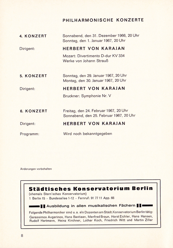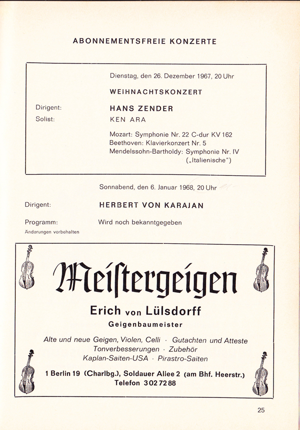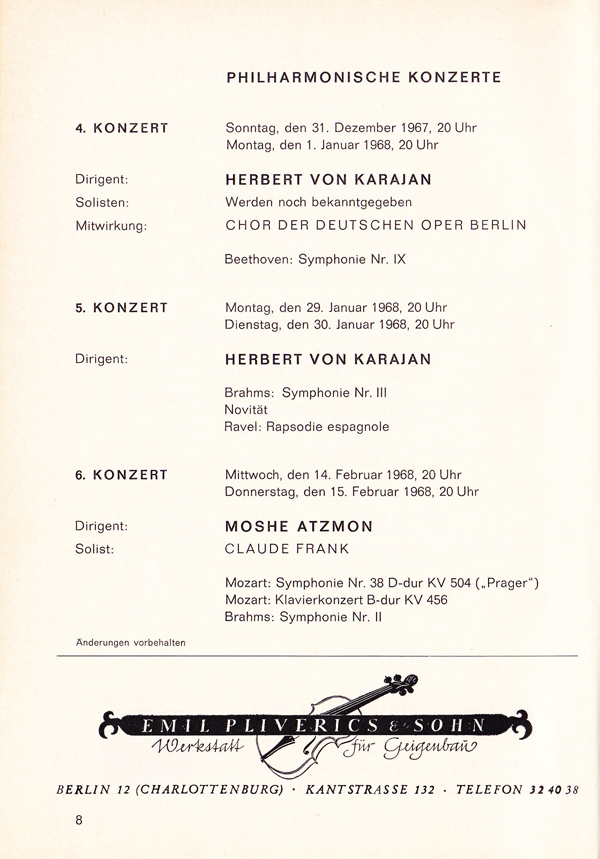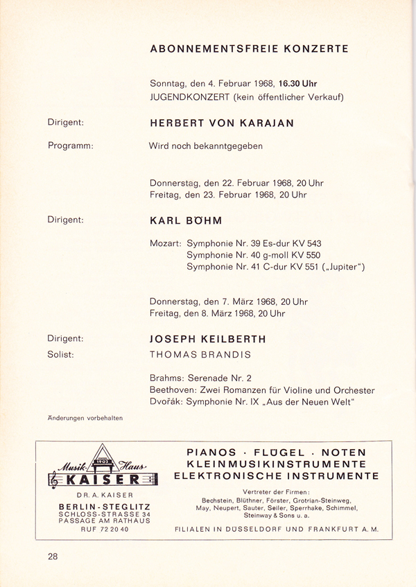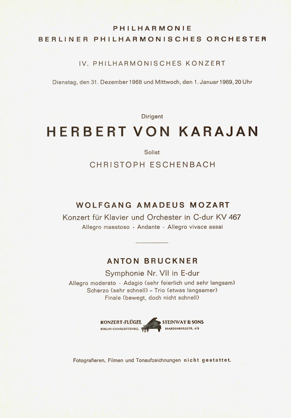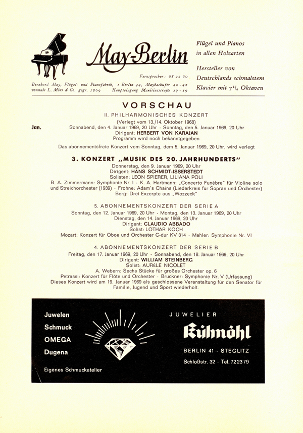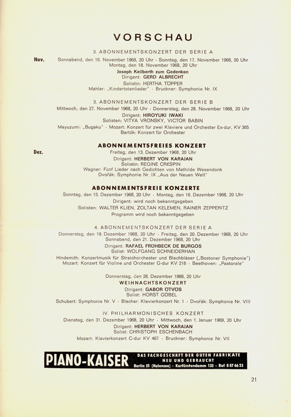 1968年12月13日のAbonnementfreies Konzertとして次のように予定されています。