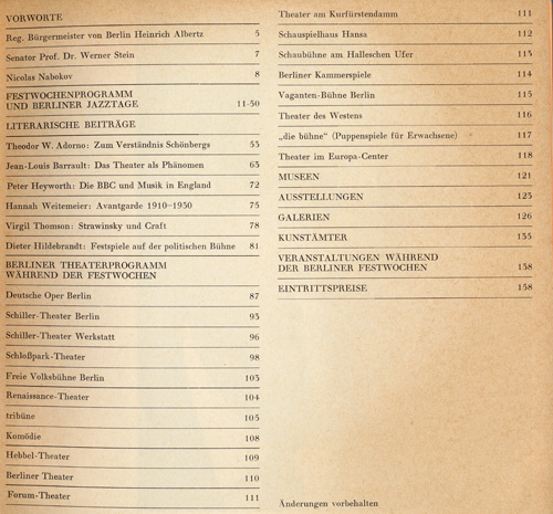 左の上にある"FESTWOCHENPROGRAMM UND BERLINER JAZZTAGE" 11-50 にプログラム内容が書かれています。