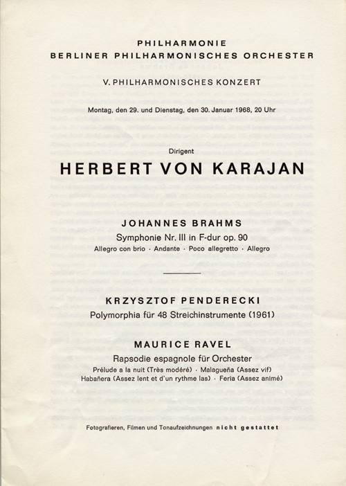 1968年12月31日,1969年1月1日プログラム冊子:ベルリン・フィル定期演奏会(Philharmonisches Konzert/4)
