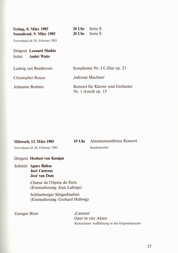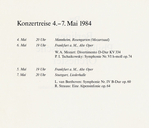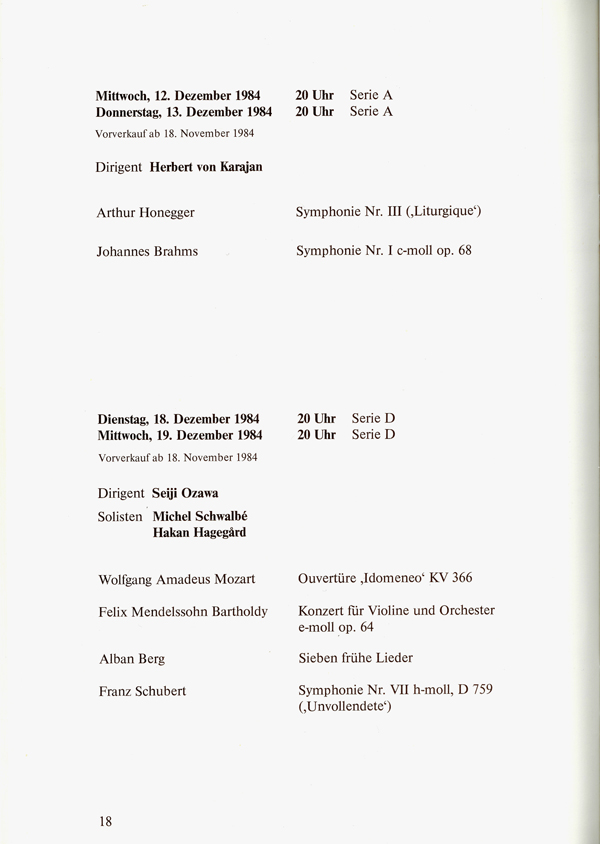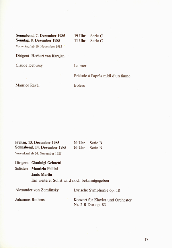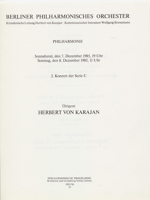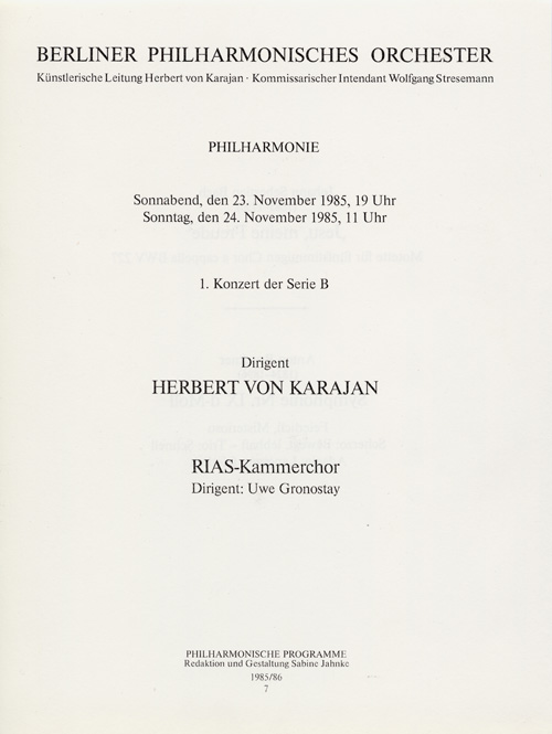 1985年12月7,8日ベルリンのフィルハーモニーにおける演奏会