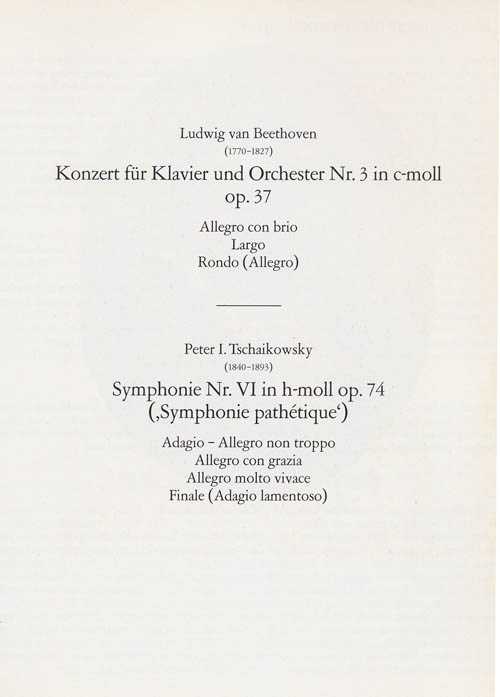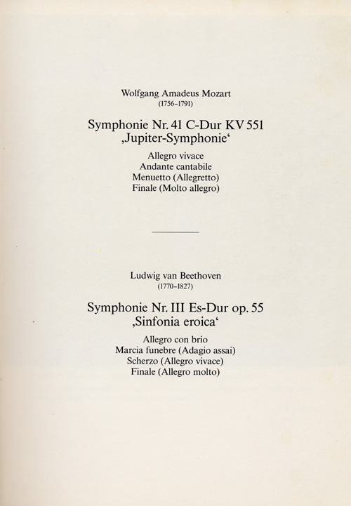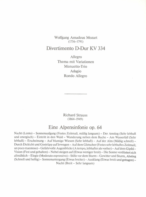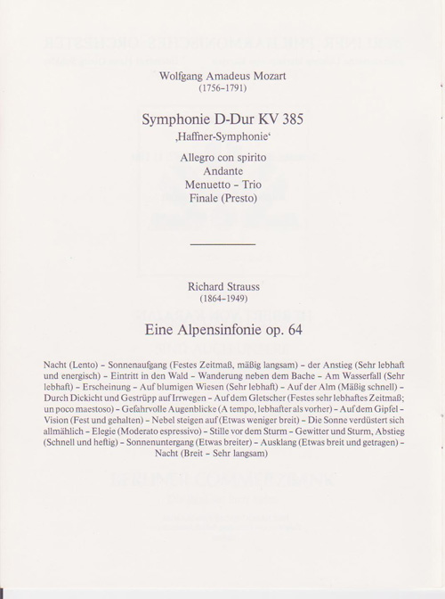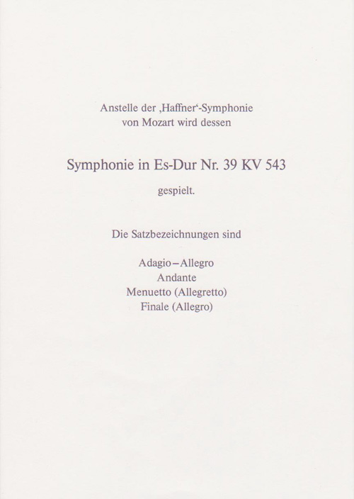 当初アナウンスされたモーツァルトの交響曲第35番「ハフナー」が交響曲第39番K543に変更された。