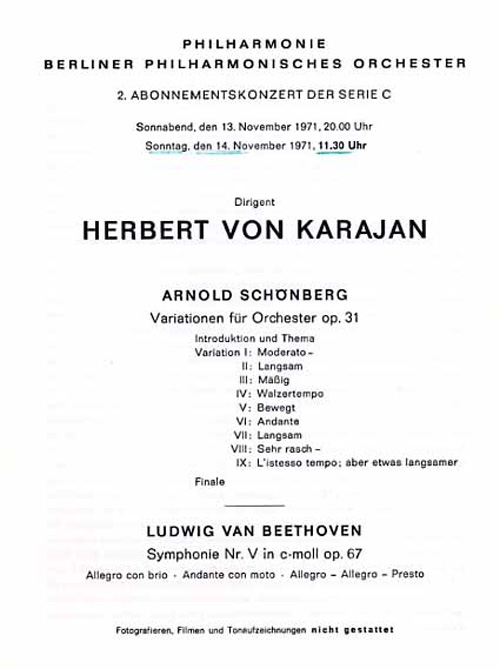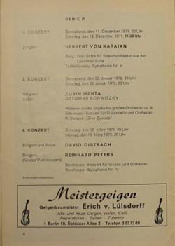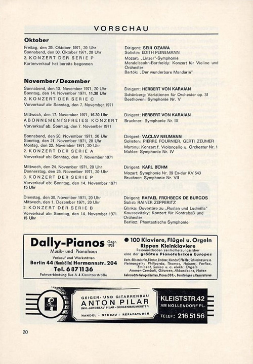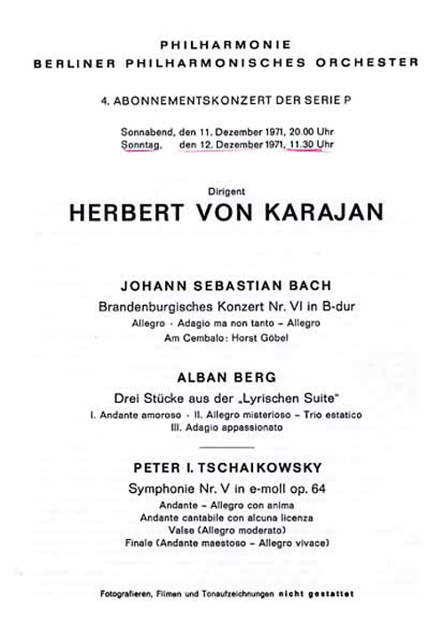 *1971年10月10日プログラム冊子:ベルリン・フィル定期外演奏会