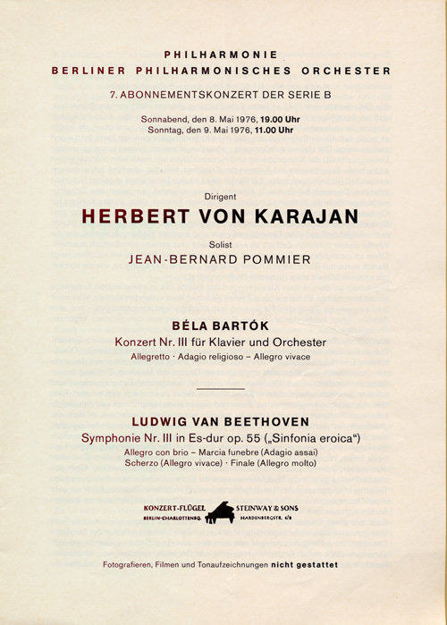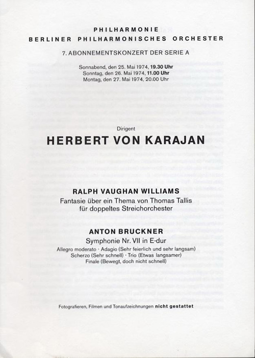 *1971年5月27日プログラム冊子:ベルリン・フィルのウィーン客演