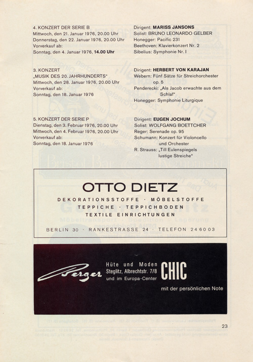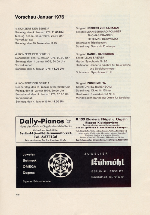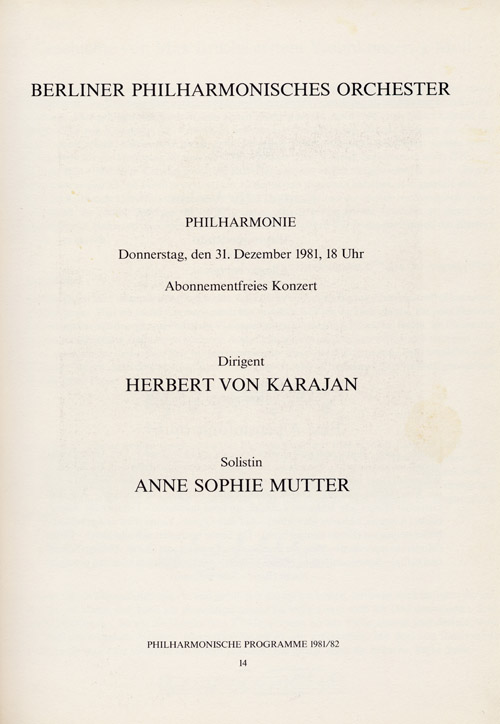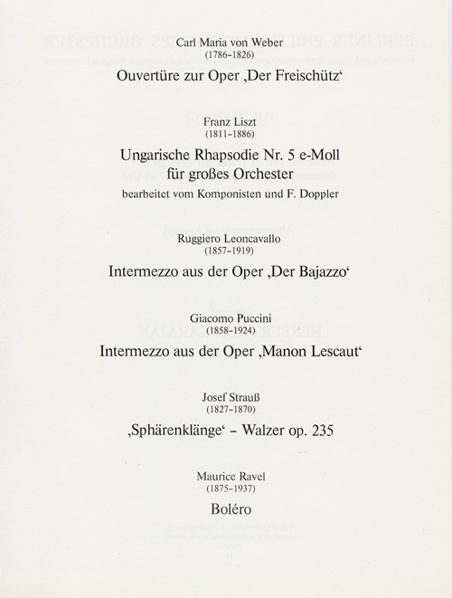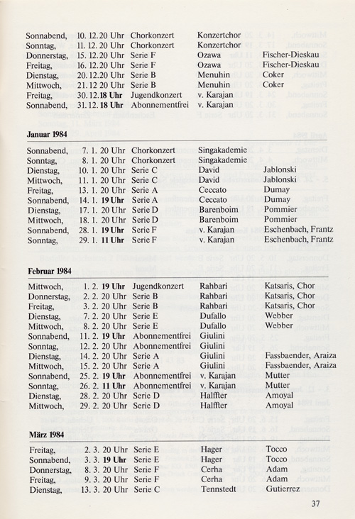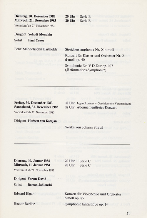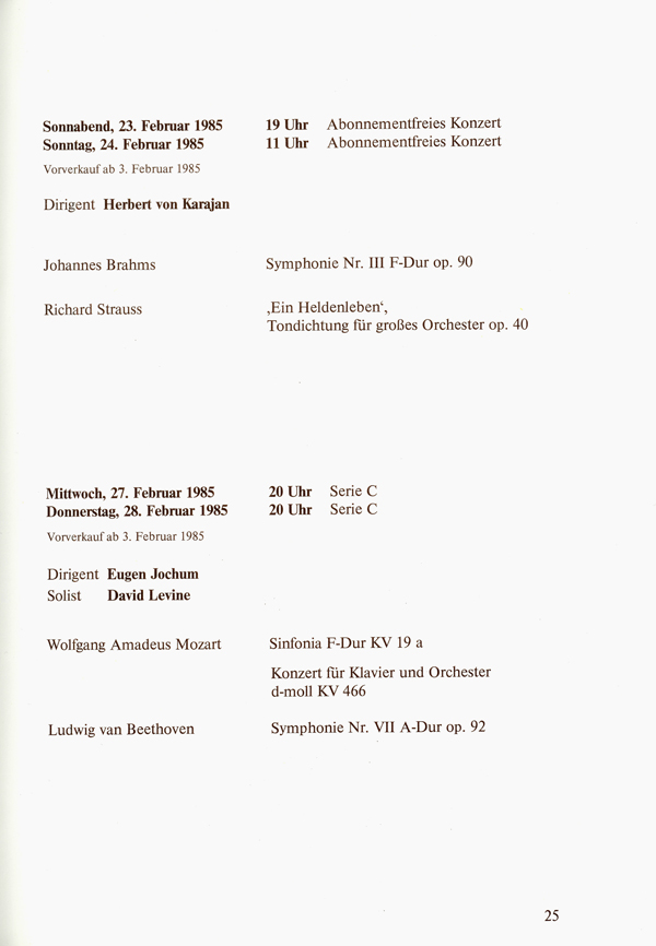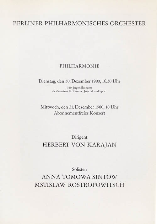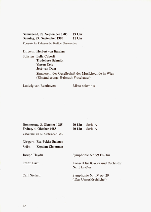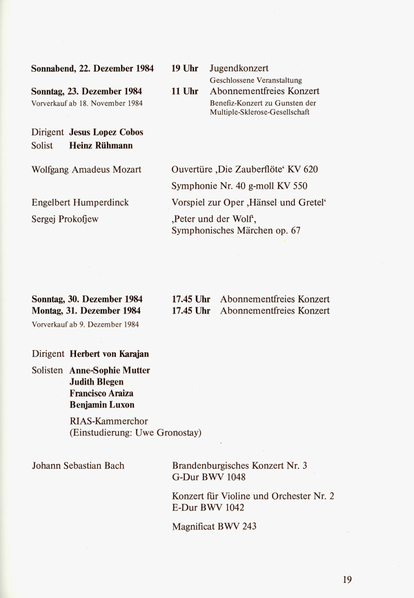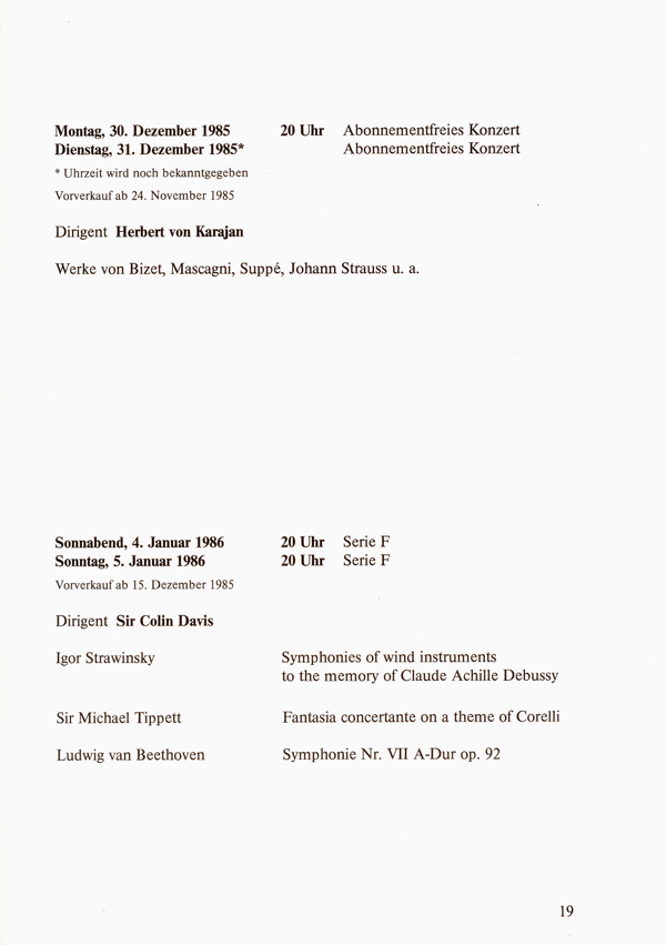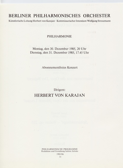 1985年12月30,31日ベルリンのフィルハーモニーにおける演奏会