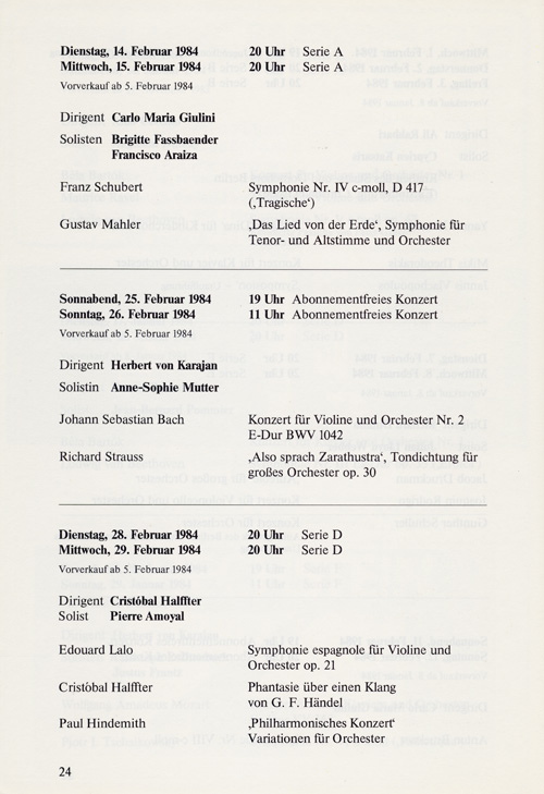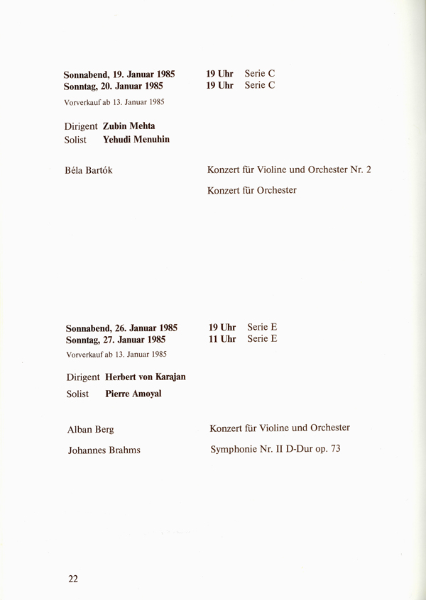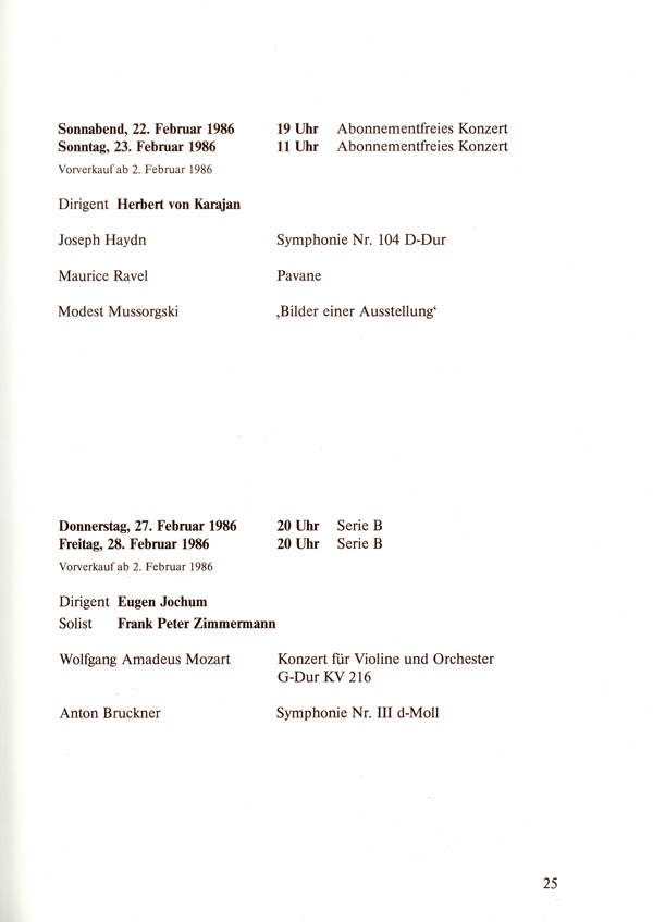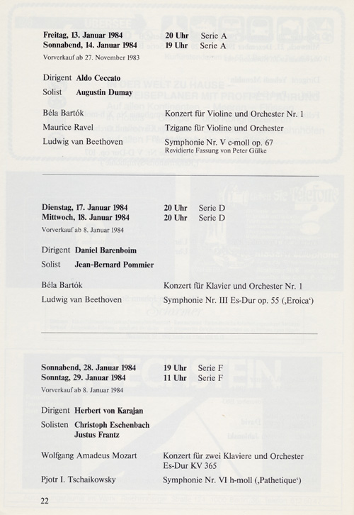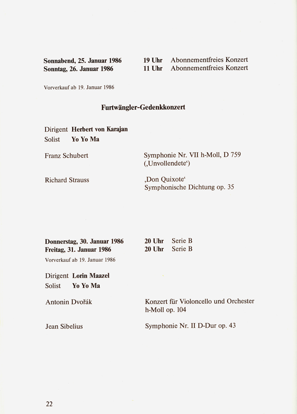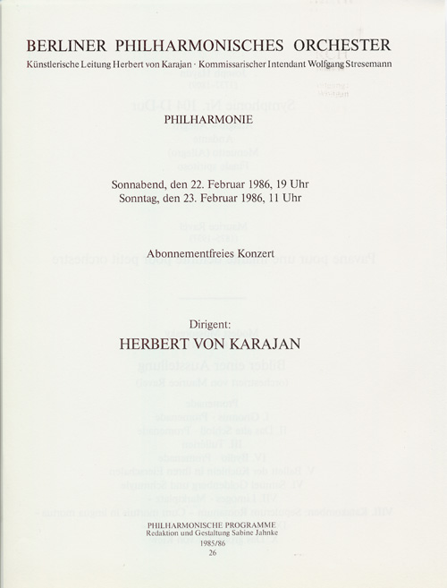 1986年2月22,23日ベルリンのフィルハーモニーにおける演奏会