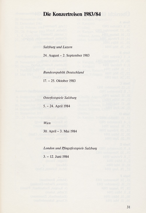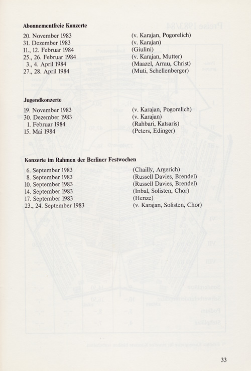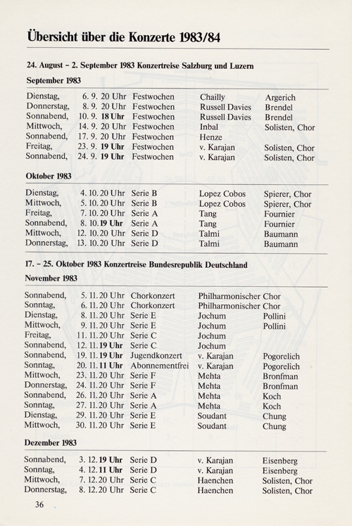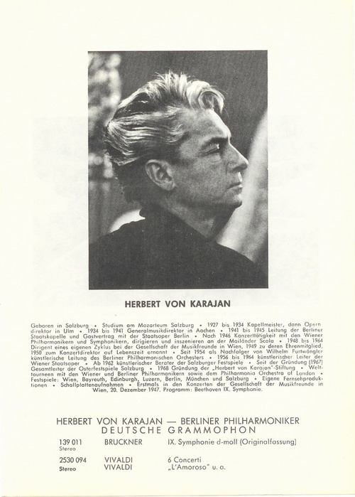《カラヤン公演プログラム冊子2》:日本以外で行われたベルリン・フィルハーモニー管弦楽団演奏会 (1937/1938 - 1968/1969シーズン)
