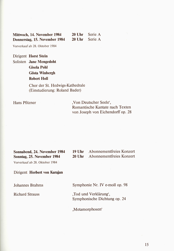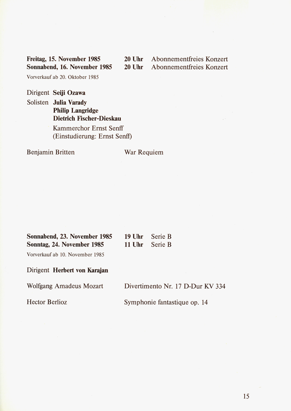 1985年11月23,24日ベルリンのフィルハーモニーにおける演奏会