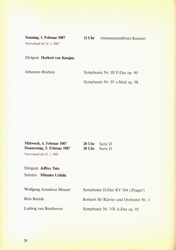 1987年2月1日ベルリンのフィルハーモニーにおける演奏会