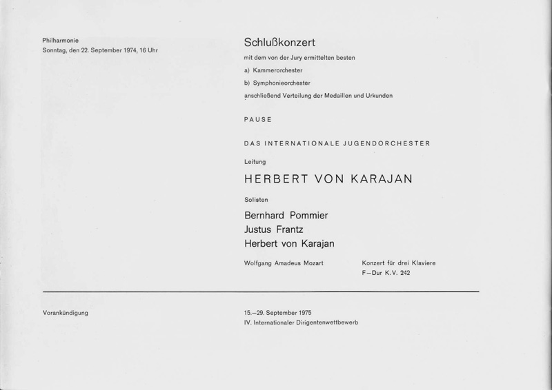 ・ベルリン芸術週間の期間中、1970年9月19日〜9月27日に第1回国際ユース・オーケストラ・コンクールが開催された。