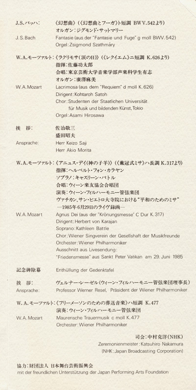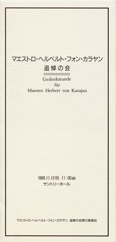 1989年11月12日 マエストロ・ヘルベルト・フォン・カラヤン 追悼の会
