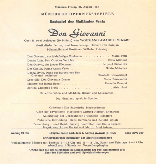 1953年8月21日バイエルン国立歌劇場「ドン・ジョヴァンニ」