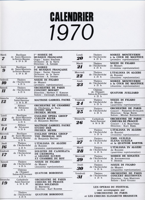 エクサン・プロヴァンス音楽祭1970年のスケジュール