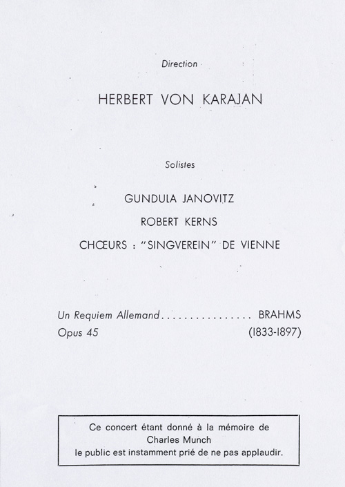 1969年10月2日、3日:シャルル・ミュンシュ追悼演奏会、ブラームスのドイツ・レクイエム作品45