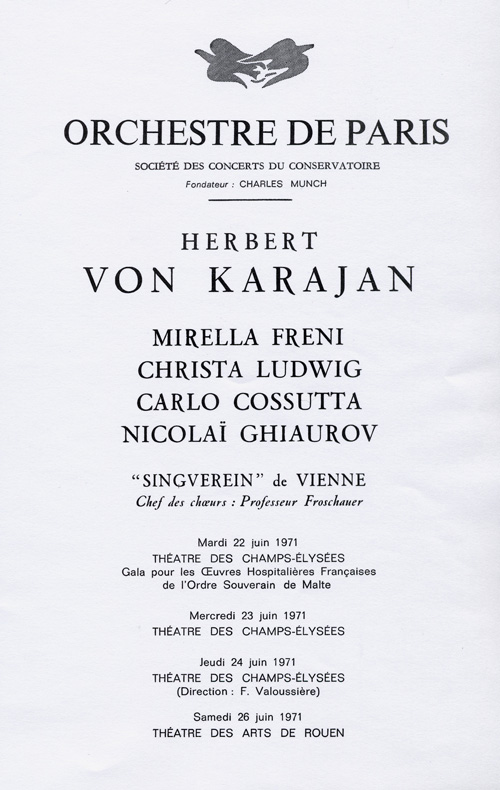 《カラヤン公演プログラム冊子16》:パリ管弦楽団