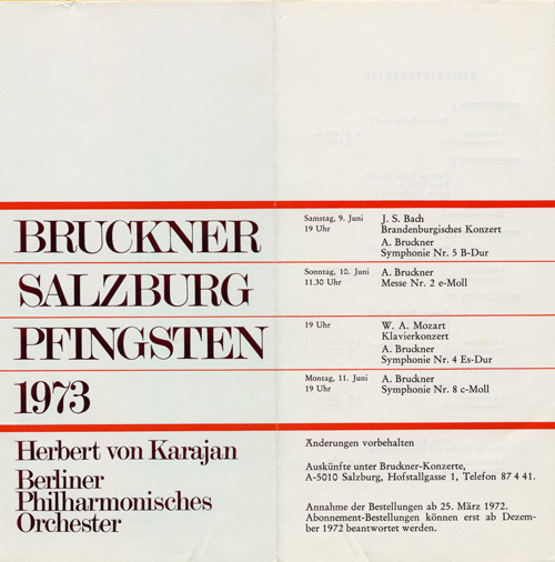 BRUCKNER SALZBURG PFINGSTEN 1973